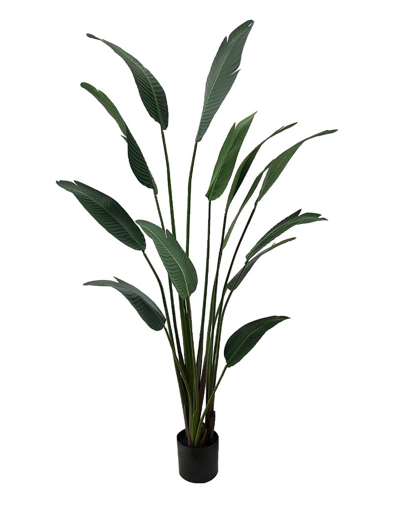 Introducing our artificial Ravenala, more commonly known as the Traveller’s Palm. This striking plant earns its nickname from its unique ability to collect rainwater in its sheaths, offering potential relief to wandering travelers in need.