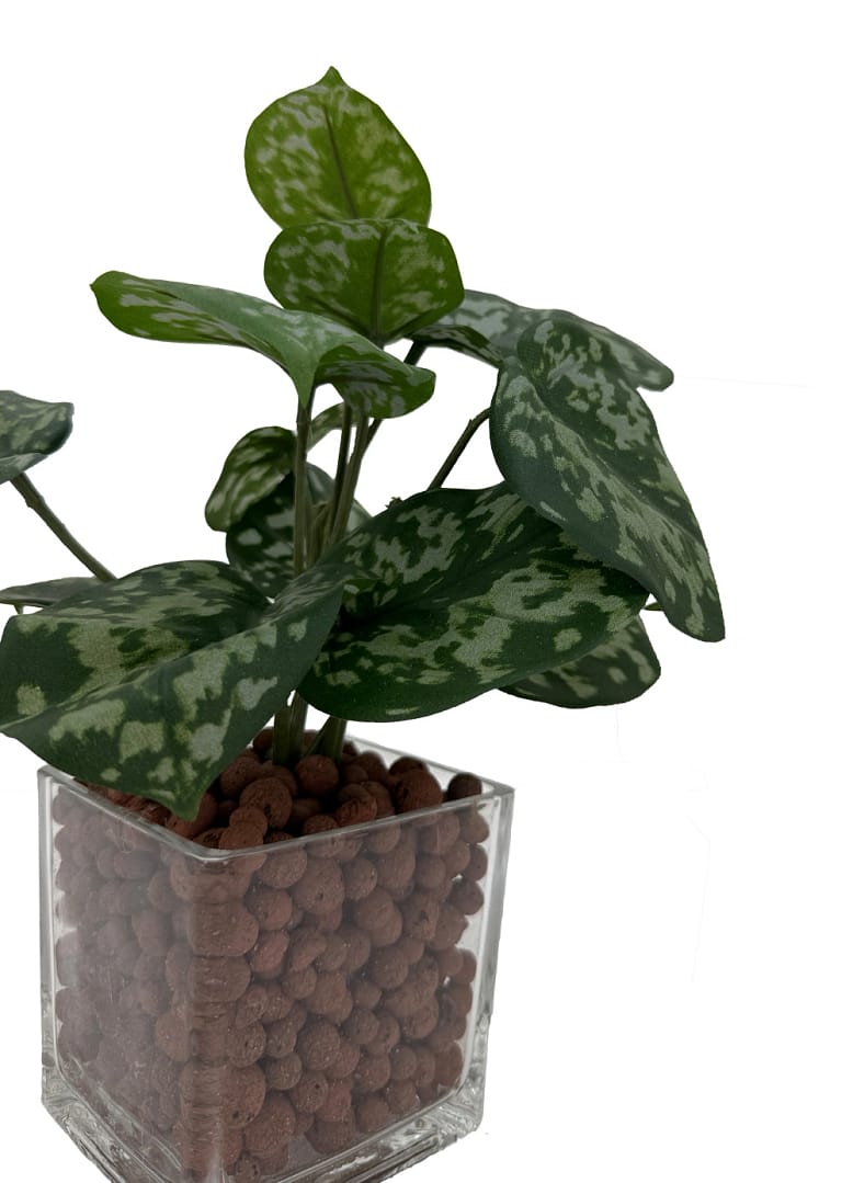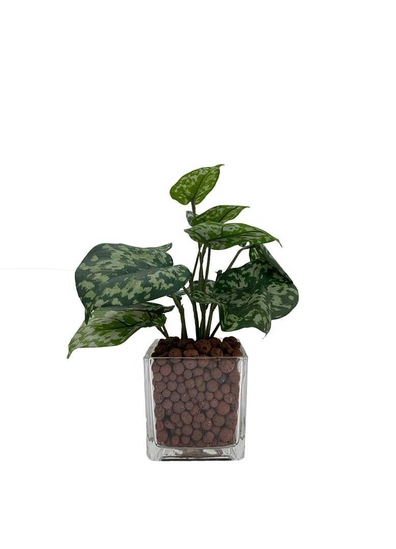 Bring effortless greenery into your space with our Emerald Marble Arrangement. Featuring lifelike, heart-shaped leaves with delicate silver variegation, this elegant display sits in a sleek glass planter filled with decorative hydro pebbles for a contemporary touch. Perfect for desks, shelves, or tabletops, this maintenance-free plant adds a fresh, natural feel without the hassle of watering or upkeep. Elevate your home or office with this everlasting beauty!