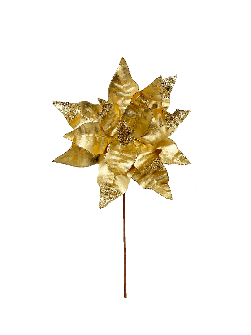 Bring a touch of glamour to your holiday decor with our Glitter Poinsettia Spray in Gold. Order now and let the festive enchantment unfold in your home!