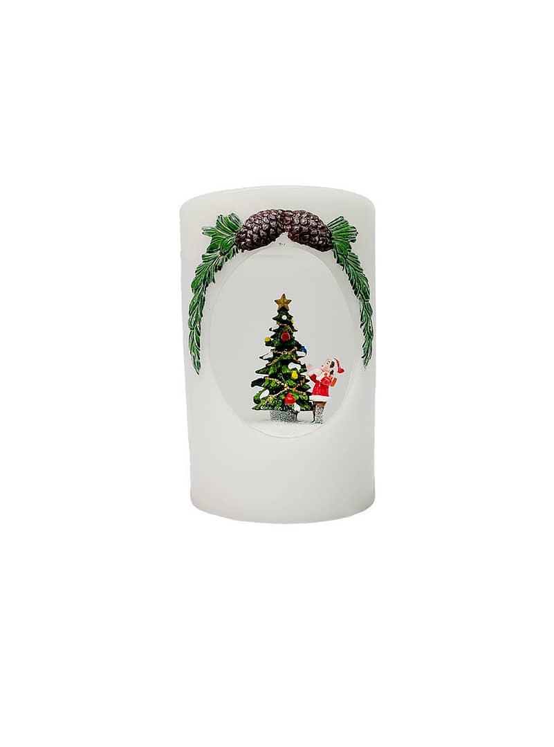 Give your Christmas decorations a classic touch with these electronic candles. To recreate the warm mood of a real candle, each candle features a flickering wick. Perfect for bringing back the magic of lit candles without the risk. This candle comes with a Christmas Tree scene giving you real Christmas vibes.