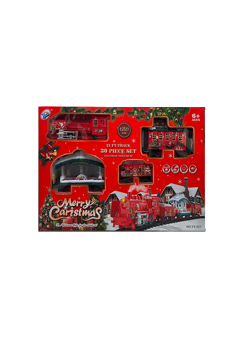 - Santa’s Workshop Design: The locomotive and cars are intricately designed with delightful scenes of Santa’s workshop, complete with busy elves, toy-filled workshops, and, of course, the jolly man himself. It’s a visual feast that captures the magic of Christmas.