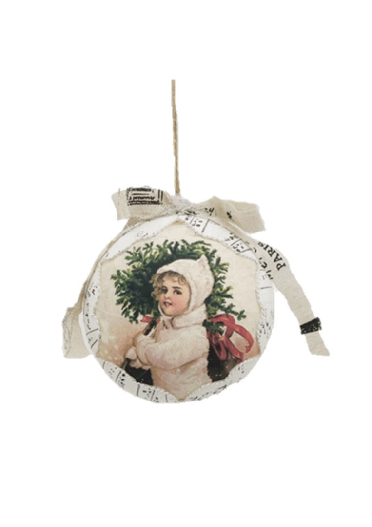 Go for something more different with this rustic paper ball ornament, in traditional hues of red, gold and green pine needles, it will rest snugly perfectly into any Christmas tree.