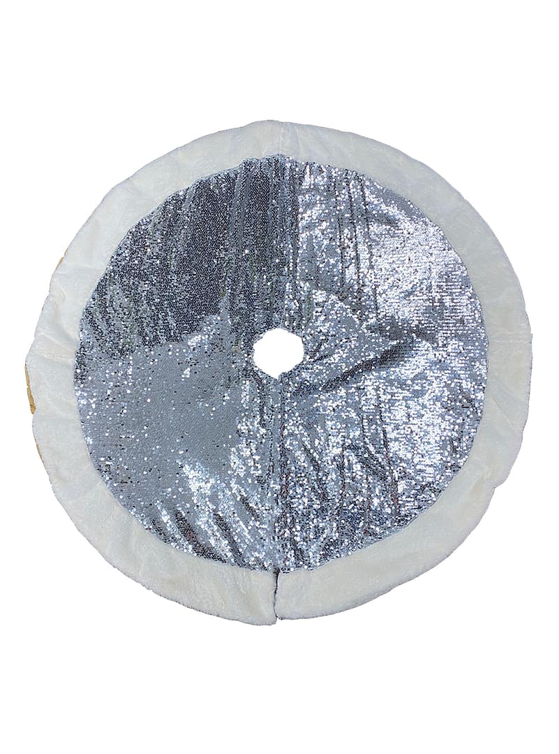 Complete the festive cheer to your Christmas Tree with this tree skirt. Featuring a sequined metallic center, it’s trimmed with a luxurious faux fur detailing. It’s perfect for creating a cozy look with a touch of royalty finishing your Christmas efforts with sophistication.