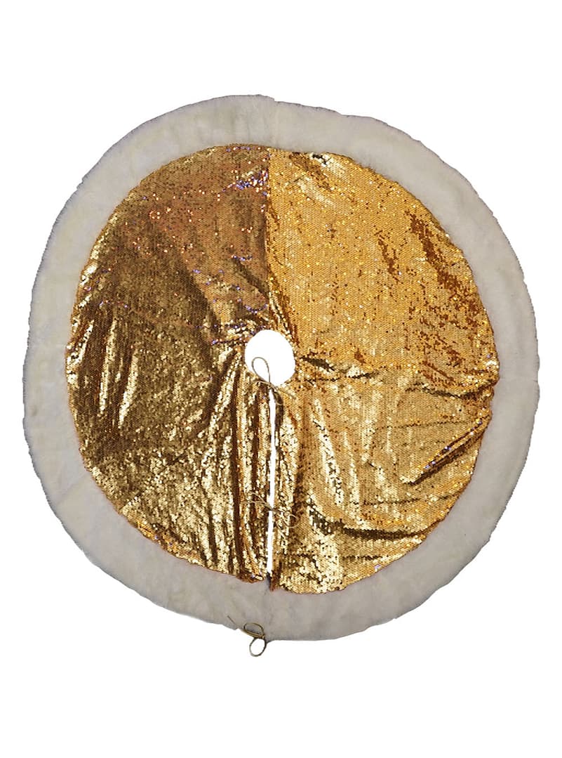 Complete the festive cheer to your Christmas Tree with this tree skirt. Featuring a gold metallic sequined center, it’s trimmed with a luxurious faux fur detailing. It’s perfect for creating a cozy look with a touch of royalty finishing your Christmas efforts with sophistication.